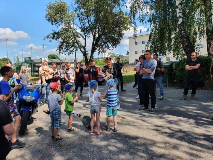 Gražią saulėtą sekmadienio popietę Alytaus miesto šeimos centro globotiniai sulaukė svečių iš Druskininkų. Šeimos centro kieme išsirikiavo gražuoliai motociklai. Atvykę svečiai vaikus vaišino ledais ir pakvietė dalyvauti pokalbyje ,,Apie saugų eismą“. Už teisingus atsakymus buvo apdovanoti atšvaitais, saldumynais. Po to svečiai pakvietė išsirinkti patinkantį motociklą ir pasiūlė juos pavežioti. Iš pradžių nedrąsiai, tačiau vėliau su malonumu, globotiniai išbandė įvairius motociklų modelius. Mažesnieji džiaugėsi atvežtais žaislais bei galimybe pasėdėti ant motociklo, įjungti garsinį signalą bei paspausti greičio rankeną.